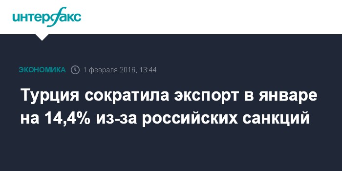 Как пишет газета Hurriyet, падение в основном связано с санкциями, введенными Россией. Кроме того, в январе текущего года было на один рабочей день меньше, чем в прошлом году, что привело к снижению экспорта на $386 млн.