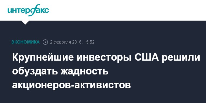 Крупнейшие инвесторы США решили обуздать жадность акционеров-активистов