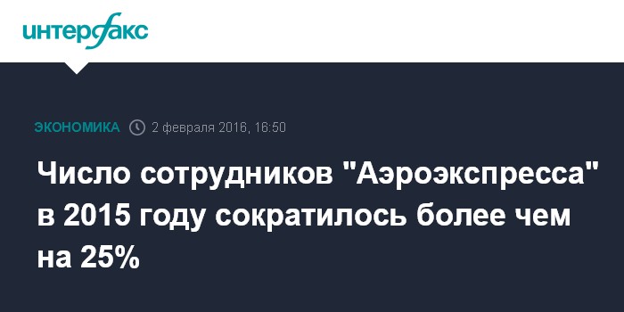 Москва. 2 февраля. INTERFAX.RU – Число сотрудников "Аэроэкспресса" в 2015 году сократилось более чем на четверть.