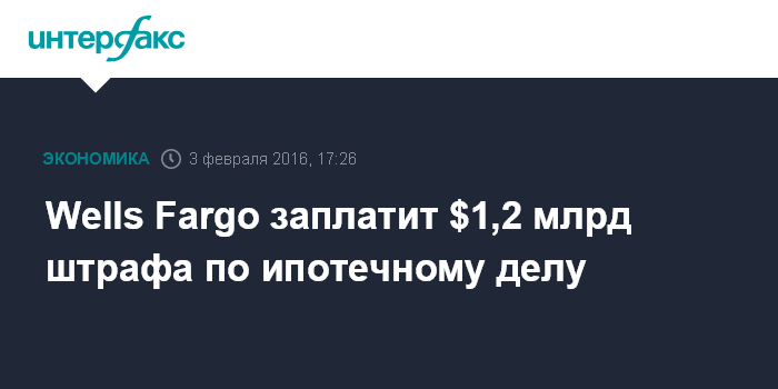 Wells Fargo заплатит $1,2 млрд штрафа по ипотечному делу