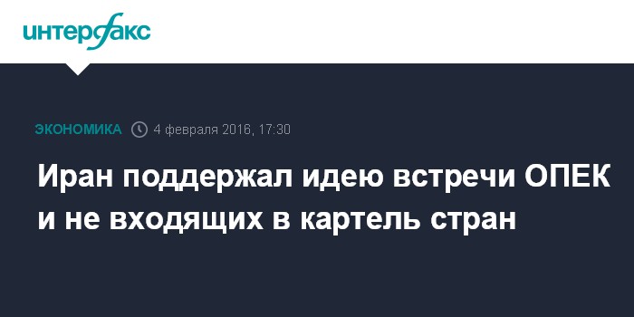 – В Иране считают, что Проведение встречи представителей стран-членов ОПЕК и стран, не входящих в картель, могло бы оказать благоприятное влияние на мировой рынок нефти, считают в Иране. Об этом в четверг заявил советник верховного лидера Ирана Али Акбар Велаяти.