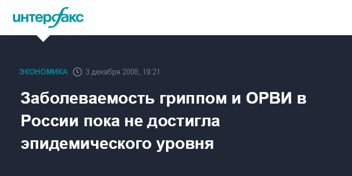Москва. 3 декабря. INTERFAX.RU - Заболеваемость гриппом и ОРВИ в целом по России пока не достигла эпидемического порога, сообщает Роспотребнадзор.