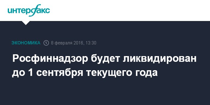 Москва. 8 февраля. INTERFAX.RU – Федеральную службу финансово-бюджетного надзора (Росфиннадзор) планируется ликвидировать к 1 сентября 2016 года.