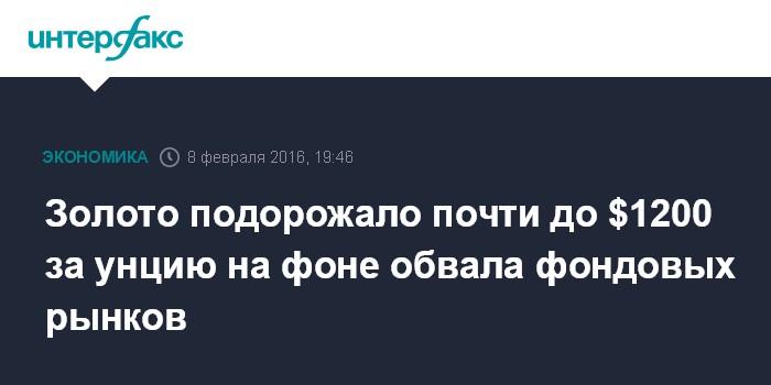 Москва. 8 февраля. INTERFAX.RU - Золото дорожает в понедельник на фоне повышенного спроса на надежные активы, вызванного обвалом на фондовых рынках США и Европы, сообщает MarketWatch.