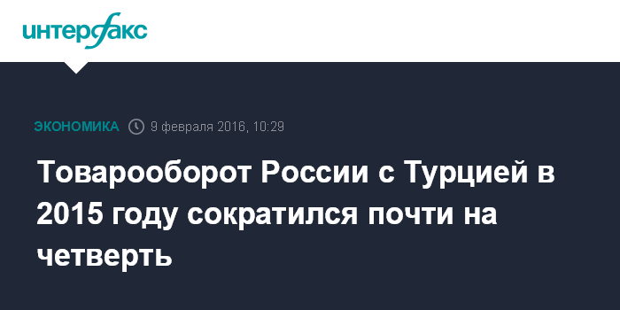Товарооборот России с Турцией в 2015 году сократился почти на четверть