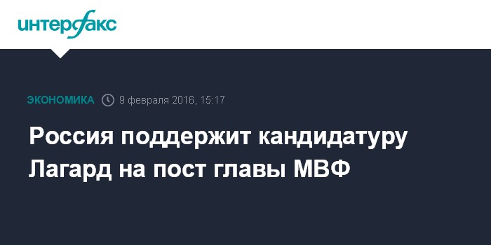 Москва. 9 февраля. INTERFAX.RU - Россия в ходе предстоящих в 2016 году очередных выборов директора-распорядителя Международного валютного фонда поддержит кандидатуру нынешнего руководителя МВФ Кристин Лагард, заявил журналистам министр финансов РФ Антон Силуанов.