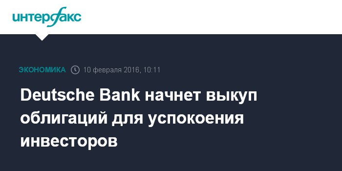 Москва. 10 февраля. INTERFAX.RU – Deutsche Bank рассматривает возможность выкупа собственных облигаций на фоне опасений инвесторов, что у банка может не хватить ликвидности на обслуживание долга, сообщает агентство Bloomberg со ссылкой на информированные источники.