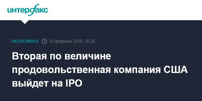Москва. 10 февраля. INTERFAX.RU – Вторая по величине продовольственная компания США, US Foods Holdings, выручка которой превышает $20 млрд в год, подала заявку на первичное публичное размещение акций в Комиссию по ценным бумагам и биржам (SEC) США, сообщает MarketWatch.