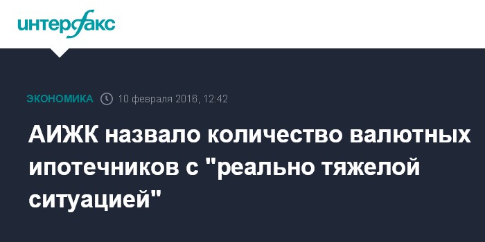 Москва. 10 февраля. INTERFAX.RU – Реально тяжелая ситуация с погашением валютной ипотеки сейчас существует у 2 тыс. заемщиков, сообщил журналистам гендиректор Агентства по ипотечному жилищному кредитованию (АИЖК) Александр Плутник в кулуарах конференции "Итоги рынка недвижимости 2015" в среду.