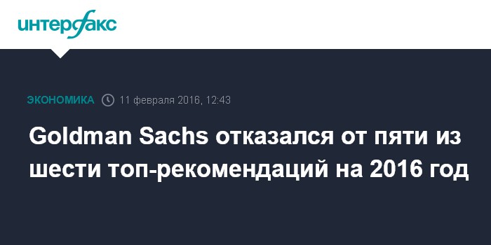 Goldman Sachs отказался от пяти из шести топ-рекомендаций на 2016 год