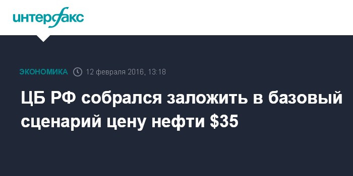 ЦБ РФ собрался заложить в базовый сценарий цену нефти $35