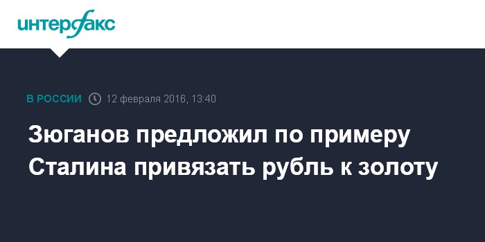 Москва. 12 февраля. INTERFAX.RU - Для восстановления экономического суверенитета РФ необходимо вернуться к решению Сталина и привязать рубль не к доллару США, а к золоту, заявил лидер КПРФ Геннадий Зюганов в пятницу на Орловском экономическом форуме