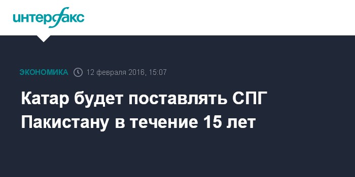 Катар будет поставлять СПГ Пакистану в течение 15 лет