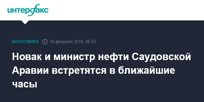 Москва. 16 февраля. INTERFAX.RU – Министр энергетики РФ Александр Новак и министр нефти и минеральных ресурсов Саудовской Аравии Али аль-Наими могут встретиться во вторник в первой половине дня, сообщил "Интерфаксу" источник, близкий к переговорам.