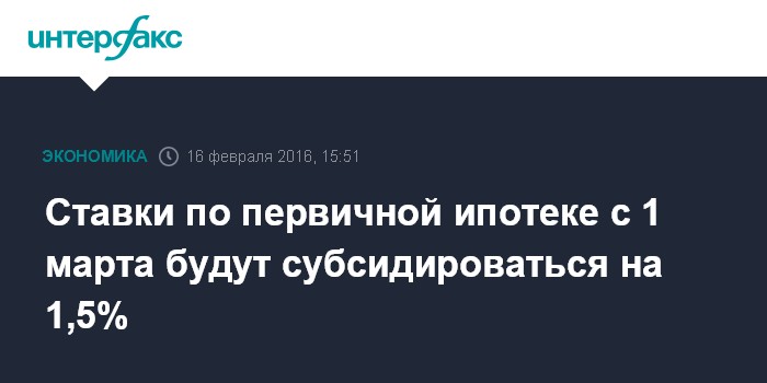 Ставки по первичной ипотеке с 1 марта будут субсидироваться на 1,5%