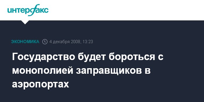 Москва. 4 декабря. INTERFAX.RU - Государство будет бороться с монополией топливозаправщиков в российских аэропортах, заявил премьер-министр РФ Владимир Путин, отвечая на вопросы граждан в прямом телеэфире.