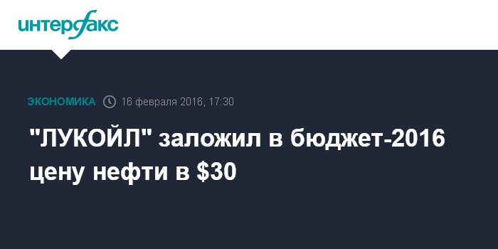 Москва. 16 февраля. INTERFAX.RU – "ЛУКОЙЛ" сверстал бюджет на текущий год из расчеты цены нефти в $30 за баррель, сообщил журналистам глава "ЛУКОЙЛа" Вагит Алекперов.