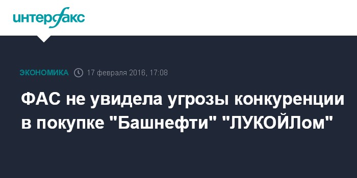 ФАС не увидела угрозы конкуренции в покупке "Башнефти" "ЛУКОЙЛом"