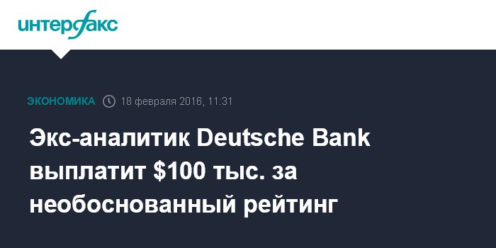 Экс-аналитик Deutsche Bank выплатит $100 тыс. за необоснованный рейтинг