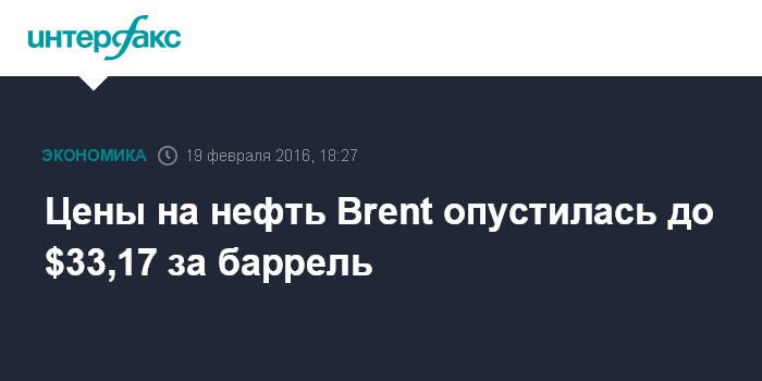 Цены на нефть Brent опустилась до $33,17 за баррель