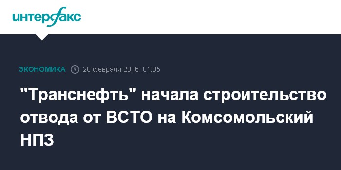 "Транснефть" начала строительство отвода от ВСТО на Комсомольский НПЗ