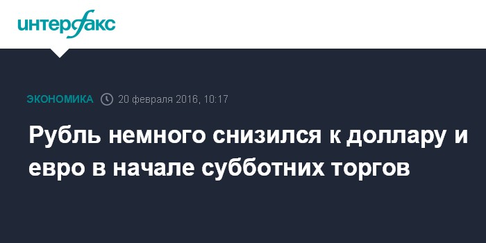 Москва. 20 февраля. INTERFAX.RU – Доллар и евро немного выросли на Московской бирже при открытии в субботу, рубль слегка снизился в связи с доминировавшей накануне вечером тенденцией к снижению мировых цен нефти.