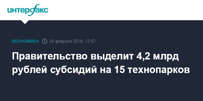 Правительство выделит 4,2 млрд рублей субсидий на 15 технопарков