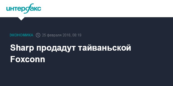 Москва. 25 февраля. INTERFAX.RU - Совет директоров японского производителя электроники Sharp Corp. одобрил продажу компании тайваньской Foxconn Technology Group за 700 млрд иен ($6,24 млрд), пишет газета The Wall Street Journal со ссылкой на свои источники.