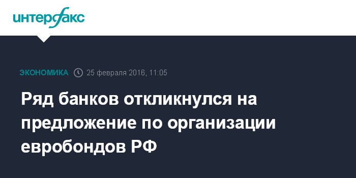 Москва. 25 февраля. INTERFAX.RU – Ряд банков откликнулся на предложение Минфина принять участие в размещении суверенных евробондов РФ.