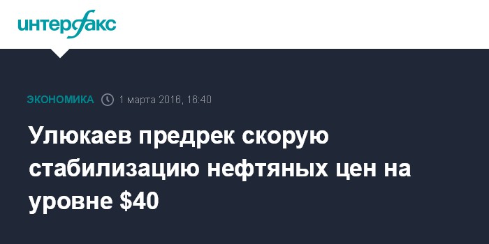 Москва. 1 марта. INTERFAX.RU – Глава Минэкономразвития Алексей Улюкаев считает, что текущий незначительный рост цен на нефть был ожидаем, и в конце первого квартала они могут стабилизироваться на уровне около $40 за баррель.