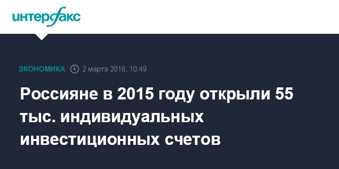 Россияне в 2015 году открыли 55 тыс. индивидуальных инвестиционных счетов