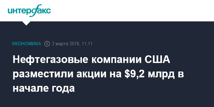 Согласно данным агентства Bloomberg, с начала текущего года нефтегазовые компании США объявили о размещениях акций на общую сумму порядка $9,2 млрд, что является самым высоким показателем для этого периода года с 1999 года.