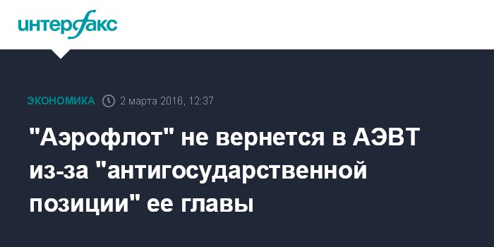 "Аэрофлот" не вернется в АЭВТ из-за "антигосударственной позиции" ее главы