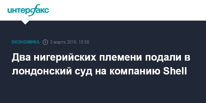 Москва. 2 марта. INTERFAX.RU – Два нигерийских племени подали иск в лондонский суд против нефтяной компании Royal Dutch Shell, обвинив ее в нанесении ущерба окружающей среде, передает BBC.