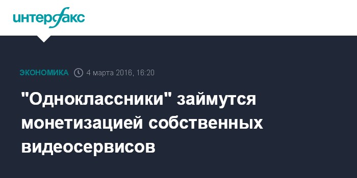 Москва. 4 марта. INTERFAX.RU – Соцсеть "Одноклассники" (ОК) планирует приступить в 2016 году к монетизации собственных видеосервисов, заявил руководитель ОК Антон Федчин журналистам в Москве.