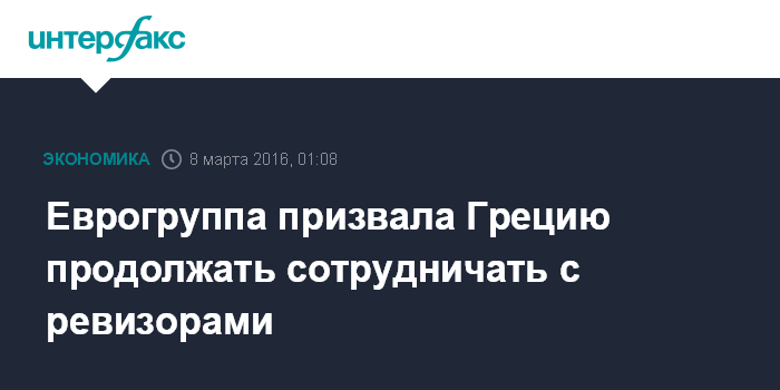 Еврогруппа призвала греческие власти и сотрудников миссии, проводящей обзор, продолжать их конструктивное сотрудничество, чтобы быстро завершить работу по обзору. В коммюнике напоминается, что обзор охватывает такие вопросы, как пенсионная реформа, фискальная стратегия и создание приватизационного фонда. Еврогруппа обменялась мнениями о реализации программы Европейского механизма стабильности для Кипра, которая истекает 31 марта 2016 года.