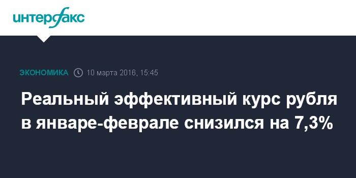 В январе-феврале 2015 года реальный эффективный курс рубля снизился на 7,3%.