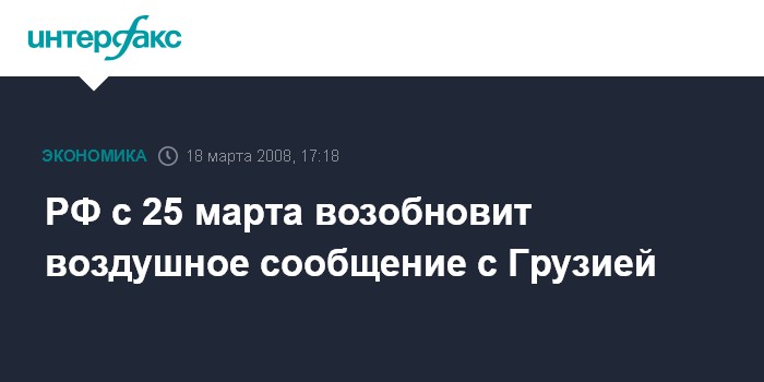 РФ с 25 марта возобновит воздушное сообщение с Грузией