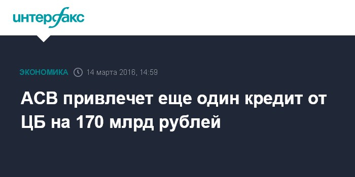 АСВ привлечет еще один кредит от ЦБ на 170 млрд рублей