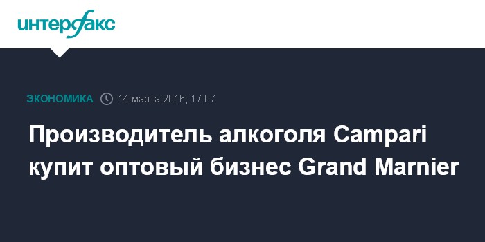 Москва. 14 марта. INTERFAX.RU – Davide Campari-Milano, крупный итальянский производитель алкогольных напитков, готовится приобрести бизнес по оптовому распространению продукции у французского конкурента - Grand Marnier Group, сообщает агентство Bloomberg со ссылкой на информированные источники.