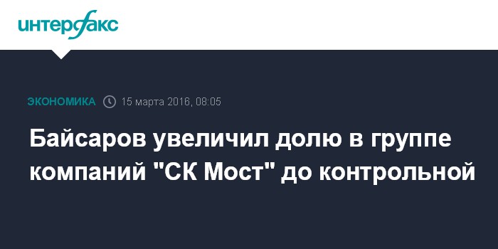 На дату сделки Байсаров уже являлся акционером СК "Мост" - в июле 2015 года он приобрел блокирующий пакет в размере 25% плюс одна акция у структур Геннадия Тимченко.