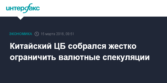 Москва. 15 марта. INTERFAX.RU – Народный банк Китая (НБК, Центробанк страны) подготовил проект налога на сделки с валютой, призванный ограничить спекуляции на валютном рынке, сообщает агентство Bloomberg со ссылкой на информированные источники.