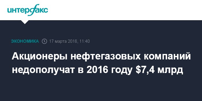 Акционеры нефтегазовых компаний недополучат в 2016 году $7,4 млрд
