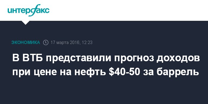 В ВТБ представили прогноз доходов при цене на нефть $40-50 за баррель