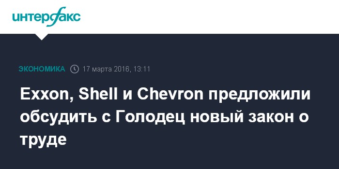 Exxon, Shell и Chevron предложили обсудить с Голодец новый закон о труде