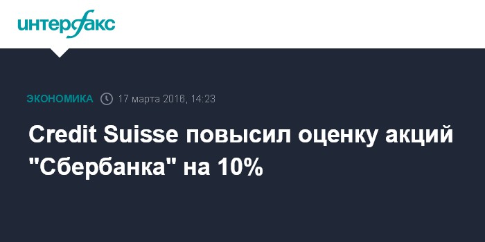 Credit Suisse повысил оценку акций "Сбербанка" на 10%