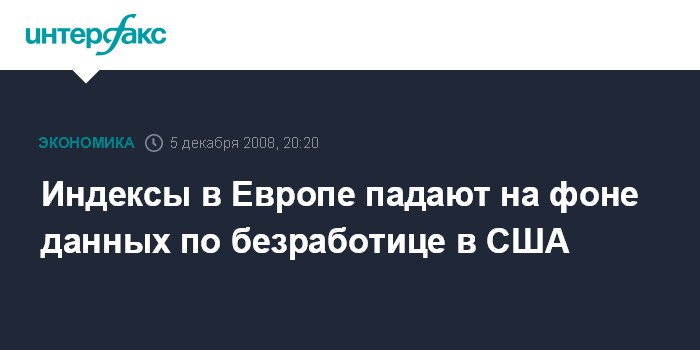 Москва. 5 декабря. INTERFAX.RU - Европейские фондовые индексы падают в пятницу на данных о максимальном за 34 года сокращении числа рабочих мест в США, подтвердивших мнение об углублении рецессии в американской экономике, сообщает агентство Bloomberg. Котировки акций сырьевых компаний падают на фоне снижения цен на нефть и металлы.