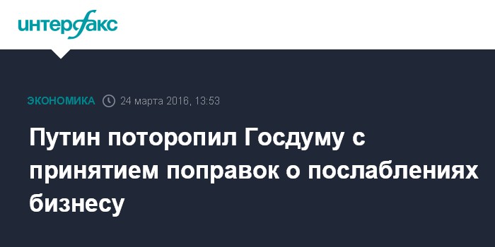 Путин поторопил Госдуму с принятием поправок о послаблениях бизнесу
