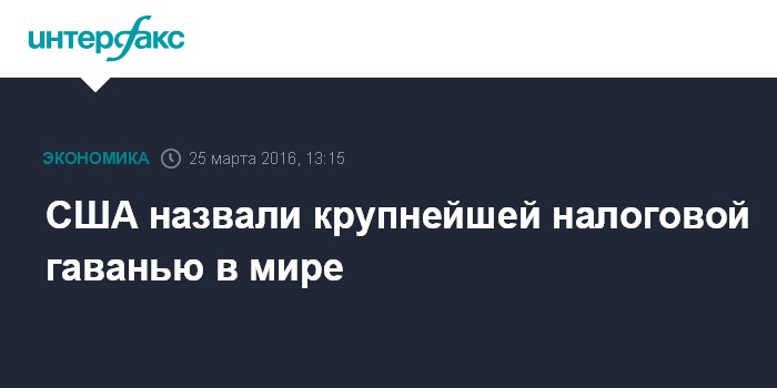 Москва. 25 марта. INTERFAX.RU - США могут вскоре стать главной налоговой гаванью мира, поскольку управляющие компании переводят в страну активы состоятельных людей из Европы и других стран мира, пишет The Wall Street Journal.