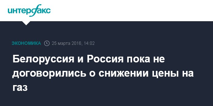 Москва. 25 марта. INTERFAX.RU - Белоруссия и Россия пока не договорились о снижении цены на поставляемый в республику газ, заявил заместитель председателя правления ПАО "Газпром" Андрей Круглов журналистам в пятницу в Минске.